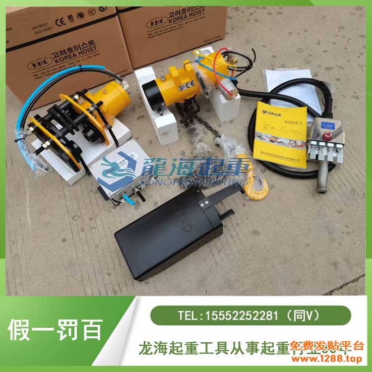 龙海起重工具自2014年1月1日开始代理韩国KHC品牌产品,可提供代理证,产品通过ISO14001认证、ISO9001认证以及CE认证,KHC气动葫芦以压缩空气为动力源的提升设备,采用气动马达驱动内部机械部件实现重物提升,具有环保、安全防爆的特点