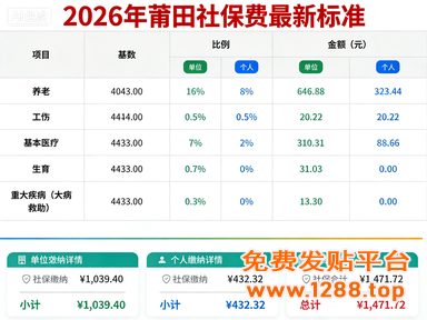 服务关键词:莆田2026年社保缴费标准,莆田分公司社保代缴,莆田五险一金代买,莆田职工社保代交,莆田劳务派遣正规公司,莆田办事处社保外包,莆田职工社保代买,莆田/全国社保公积金代买咨询热线:13710019423,梁爱秋,微信同号。